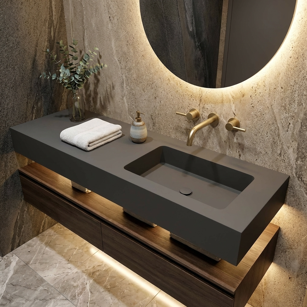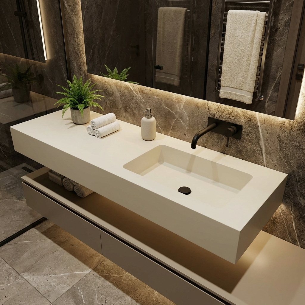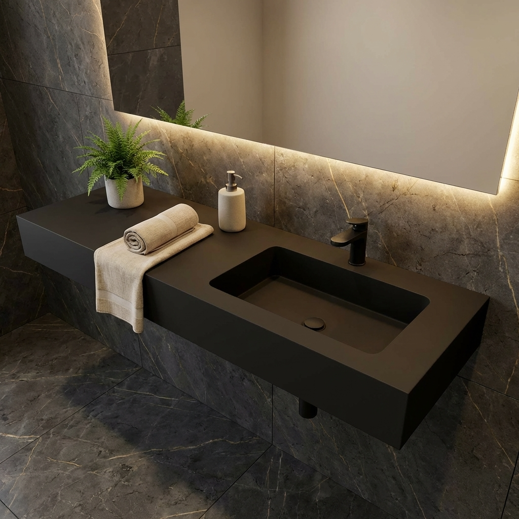Dieses Waschbecken ✅ aus hochwertigem Mineralguss überzeugt durch seine moderne Optik und langlebige Qualität. Die glatte, porenfreie Oberfläche ist besonders pflegeleicht, hygienisch und widerstandsfähig gegen Kratzer und Verfärbungen. Durch die präzise Verarbeitung entsteht eine elegante Form, die sich ideal in jedes Badezimmerdesign einfügt. Mineralguss sorgt zudem für eine angenehme Haptik und eine solide Stabilität.