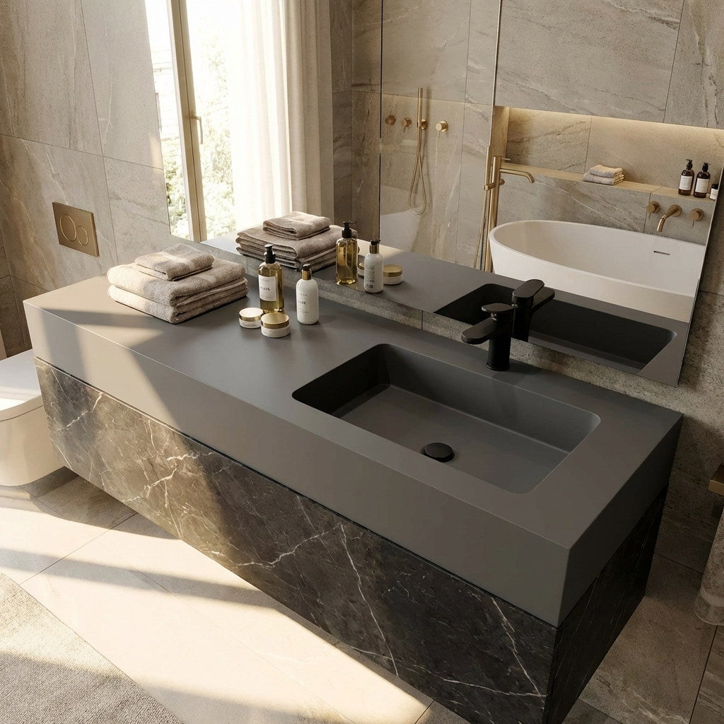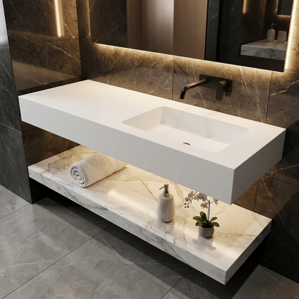 Hochwertiges Material, eine Mischung aus natürlichen Mineralien, Acrylharz und Pigmenten