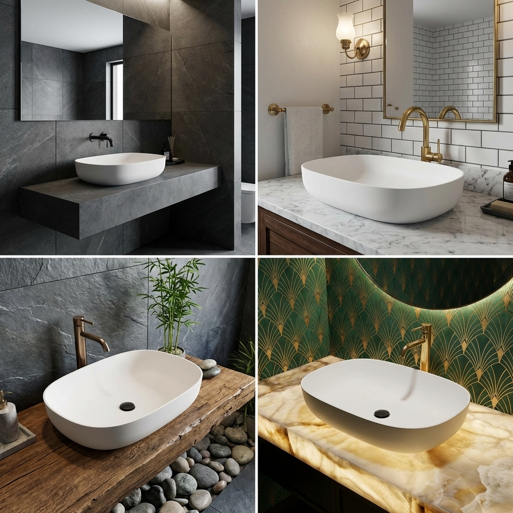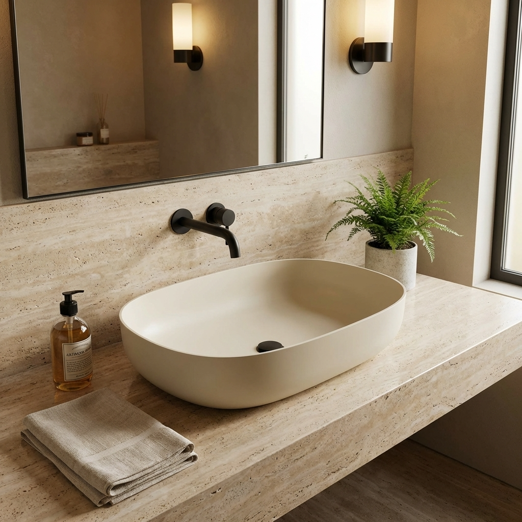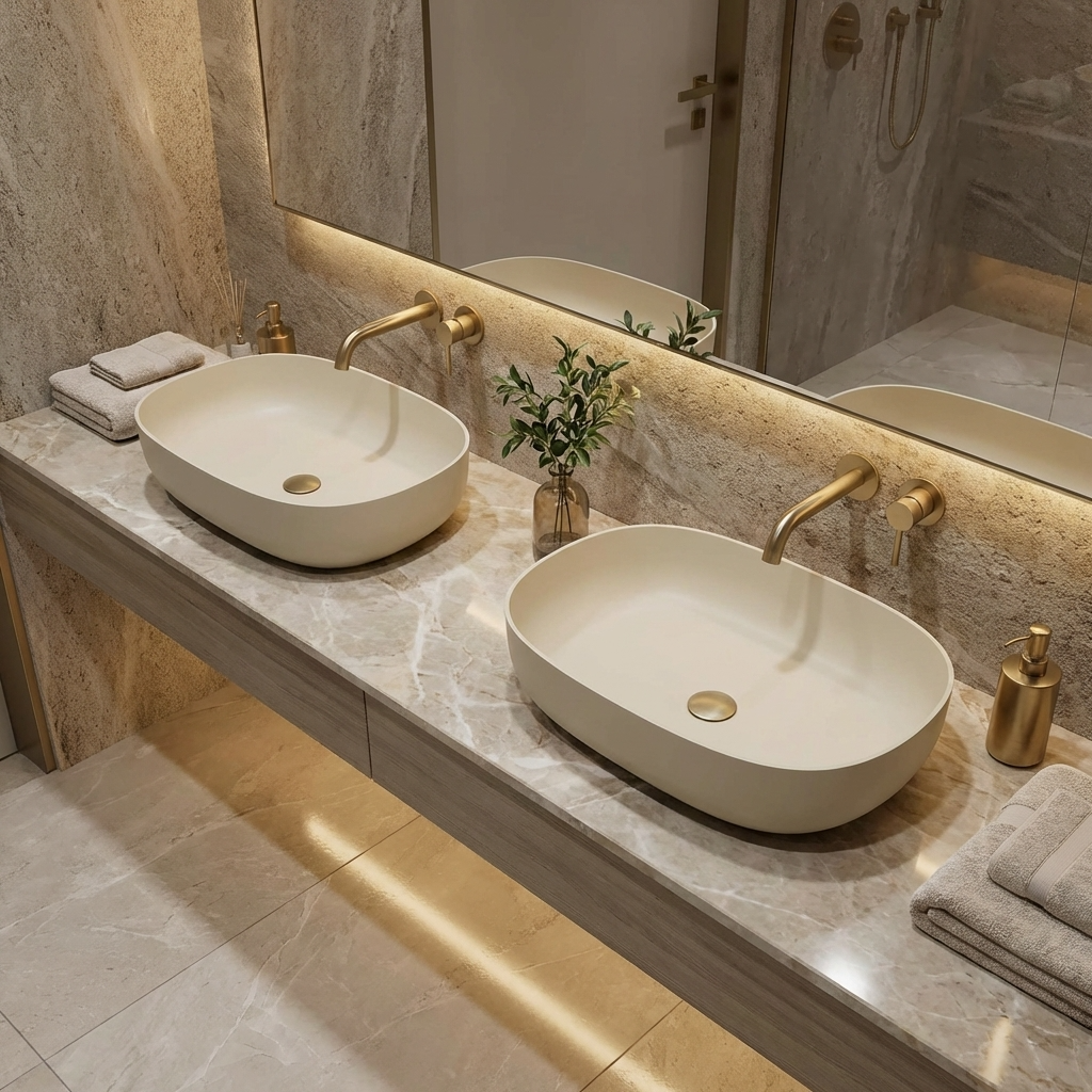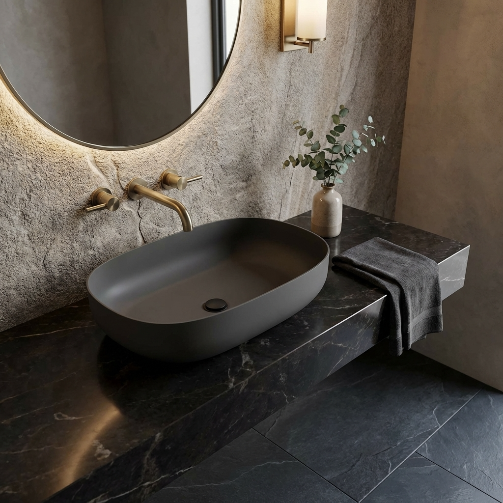 Schreibe die erste Rezension für „Aufsatzwaschbecken aus Mineralguss modell CELESTIA Kostenloser Transport 🚚“