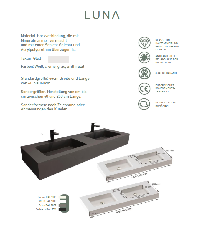 Schreibe die erste Rezension für „LUNA-Waschbecken Mineralguss“