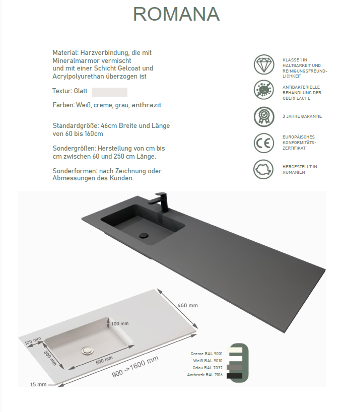 Das Waschbecken aus hochwertigem Mineralguss überzeugt durch seine moderne Optik und langlebige Qualität. Die glatte, porenfreie Oberfläche ist besonders pflegeleicht, hygienisch und widerstandsfähig gegen Kratzer und Verfärbungen. Durch die präzise Verarbeitung entsteht eine elegante Form, die sich ideal in jedes Badezimmerdesign einfügt. Mineralguss sorgt zudem für eine angenehme Haptik und eine solide Stabilität.