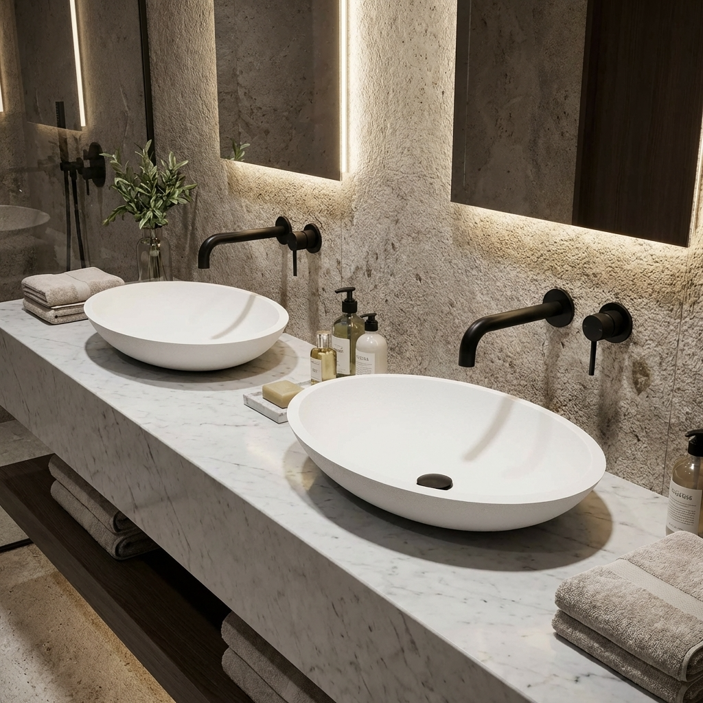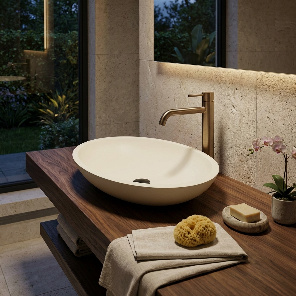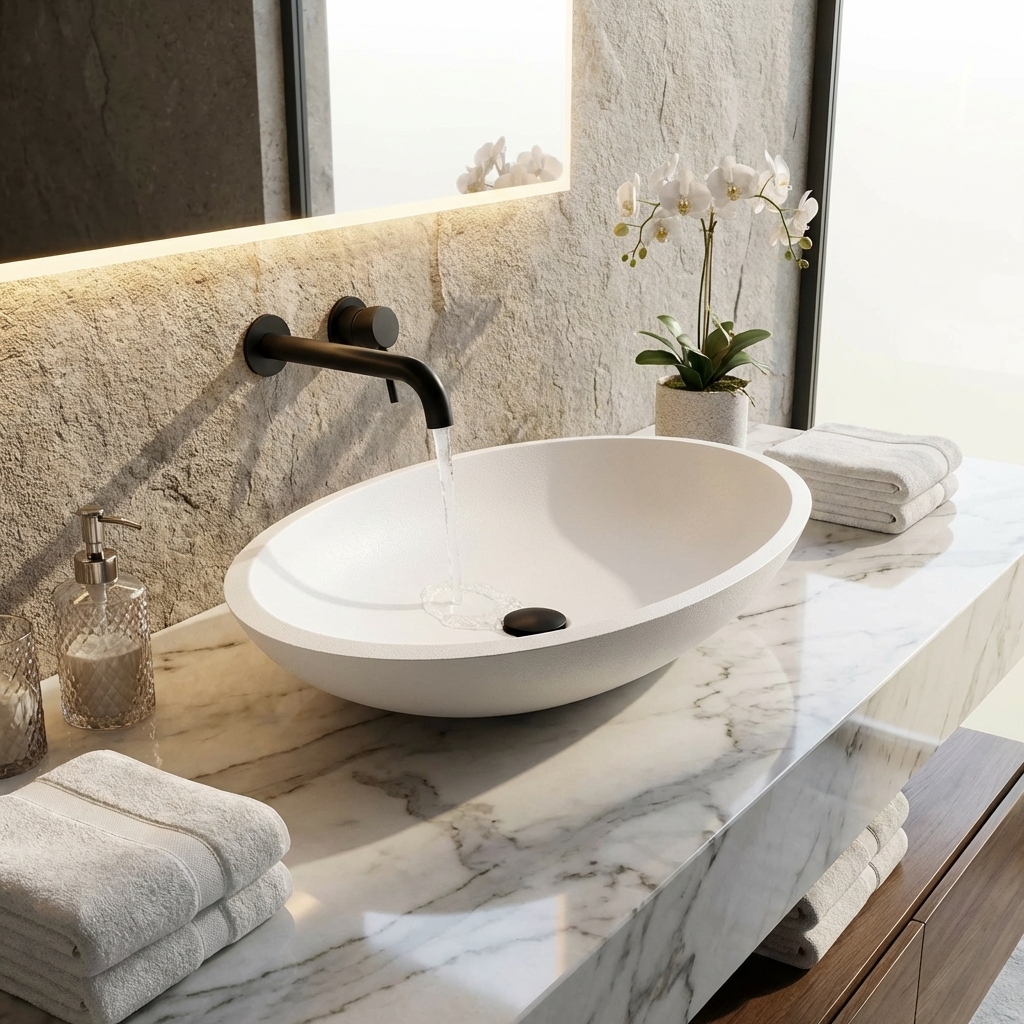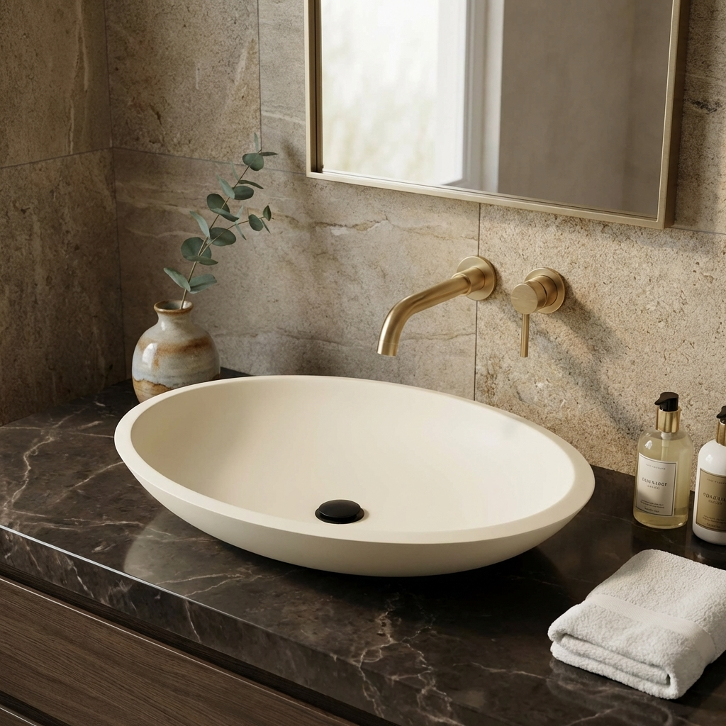 Dieses Aufsatzwaschbecken ✅ aus hochwertigem Mineralguss überzeugt durch seine moderne Optik und langlebige Qualität. Die glatte, porenfreie Oberfläche ist besonders pflegeleicht, hygienisch und widerstandsfähig gegen Kratzer und Verfärbungen. Durch die präzise Verarbeitung entsteht eine elegante Form, die sich ideal in jedes Badezimmerdesign einfügt. Mineralguss sorgt zudem für eine angenehme Haptik und eine solide Stabilität.